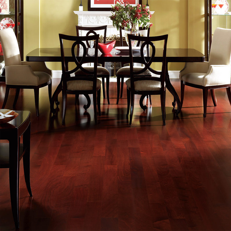 Hazel Sapele Engineered Hardwood Flooring has a burgundy and espresso tone along with medium gloss and smooth natural wood surface. This flooring is perfect for homes with light and medium traffic.