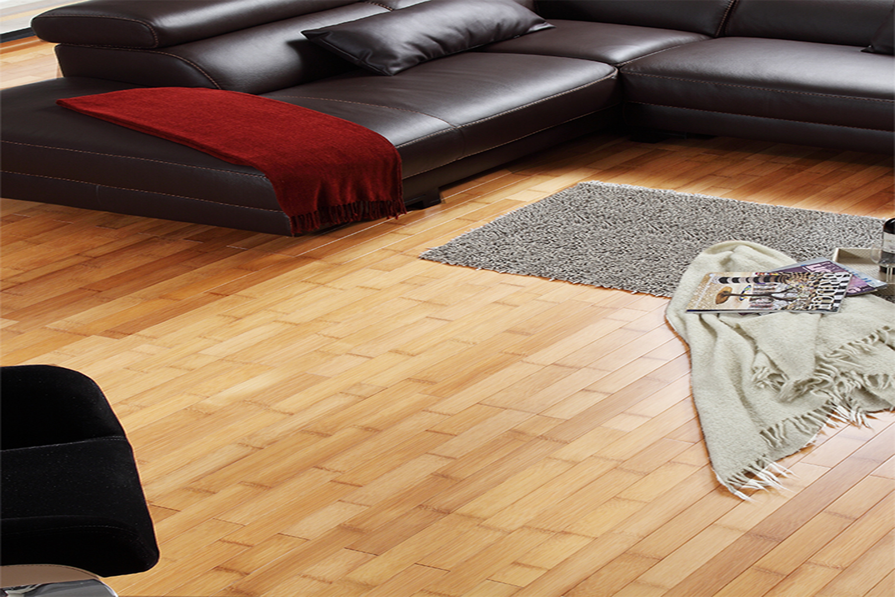 Natural Horizontal Bamboo Solid Hardwood Flooring has a natural bamboo color and smooth natural wood surface. This flooring is good for homes with medium to high traffic.