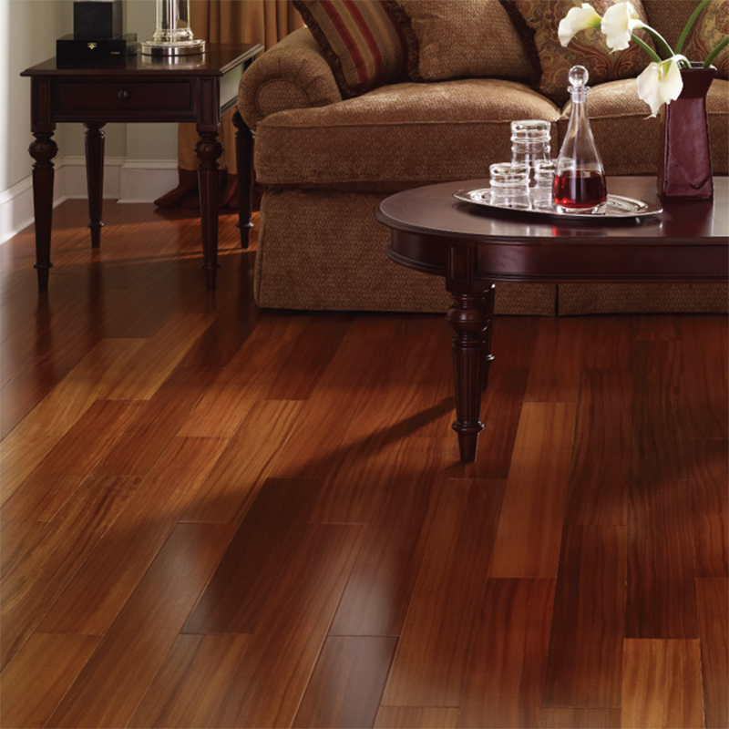 Natural Brazilian Teak Engineered Hardwood Flooring has a crimson tone, along with a medium gloss and smooth natural wood surface. This flooring is perfect for homes with light and medium traffic.
